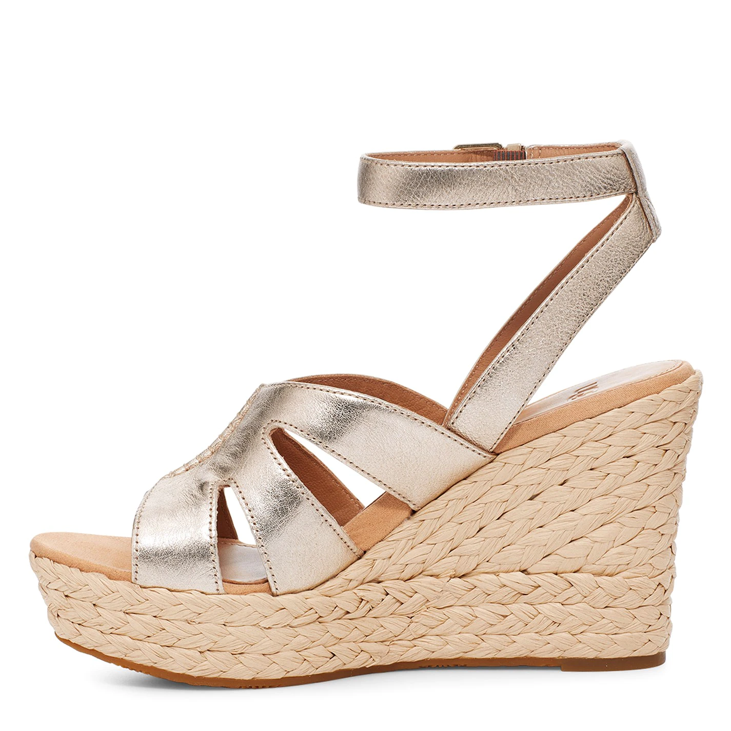 The Ugg Careena Wedge Sandals are a great addition to your summer wardrobe, crafted with a buckle fastening to the ankle strap along with strap detail to the forefoot along with espadrille detail to the midsole that gives perfect summer vibes, a rubber outsole along with the classic Ugg branding completes the look.