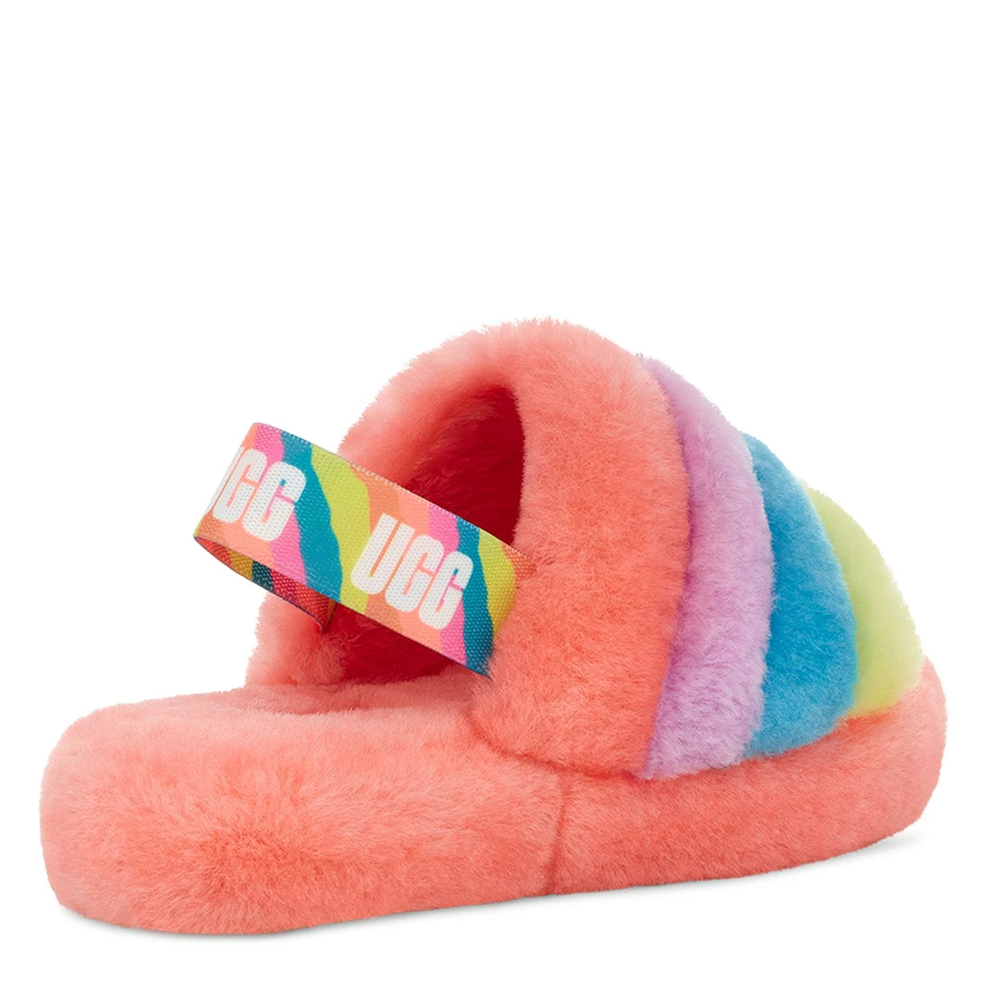 Keep your little one’s cosy with the Fluff Yeah Slides from Ugg. Crafted with the signature fluffy silhouette for a comfortable fit, these slides are sat upon a textured gum sole for added durability complete with a branded elasticated ankle strap. This open toe mule is a perfect gift for your little one’s.