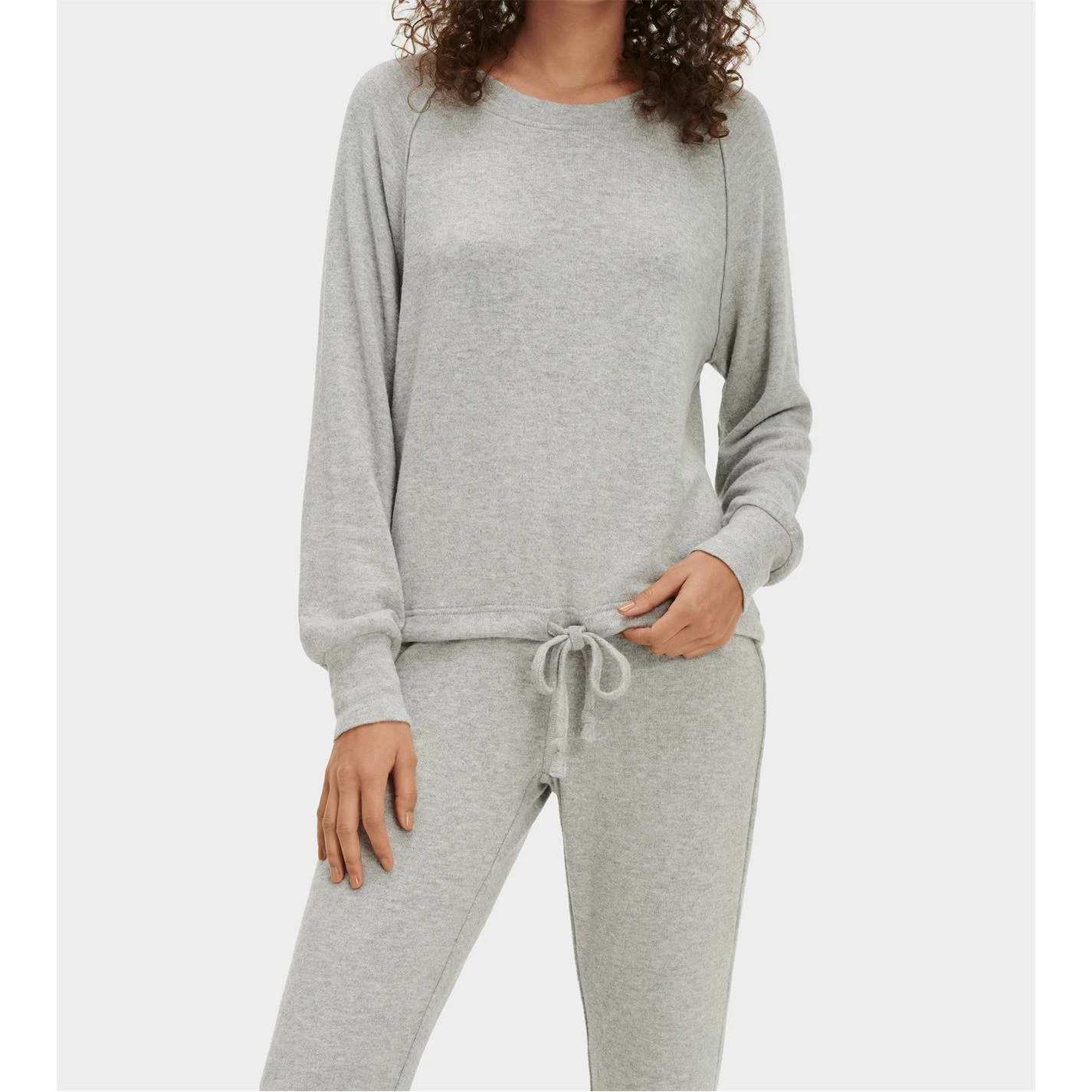 Refresh your collection with this UGG Gable Pyjama Set. The top is constructed with long sleeves, a ribbed crew neckline, and drawstring adjustment to the bottom hem. The bottoms feature an elasticated waistband and closed cuffs. Both pieces in this set in this set are a block colour design with a signature logo and are complete with UGG branding.